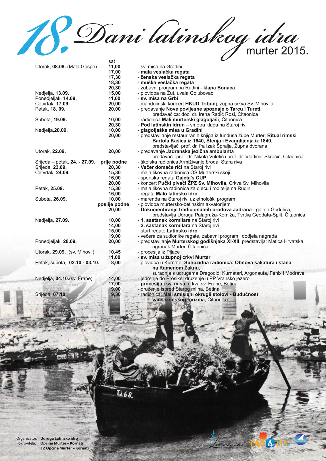 - 25 September 2016 – participation in the 19th traditional sailing boats manifestation Latinsko idro / Lateen Sail, Murter (island of Murter)